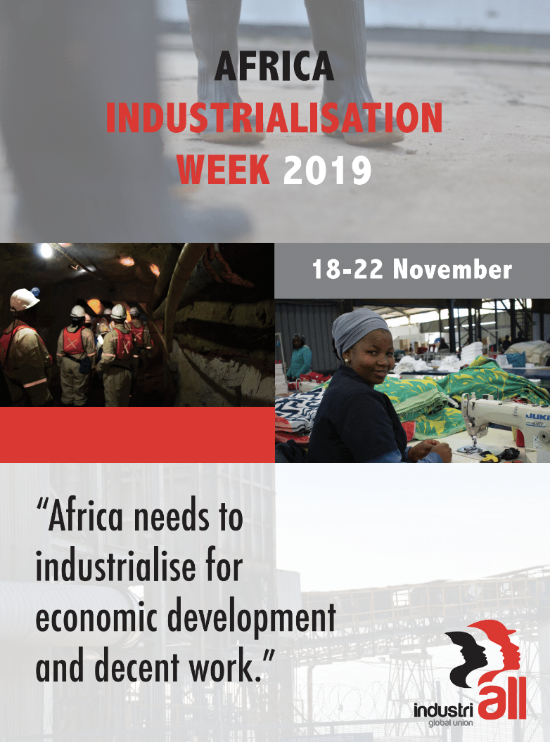 Based on the Africa Industrialization Week theme, IndustriALL Global Union in line with its congress resolutions says: “All trade agreements must include binding and enforceable clauses on labour, union and social rights […] All signatories to trade agreements must ratify and fully implement the International Labour Organization’s fundamental conventions and other essential norms and standards.”