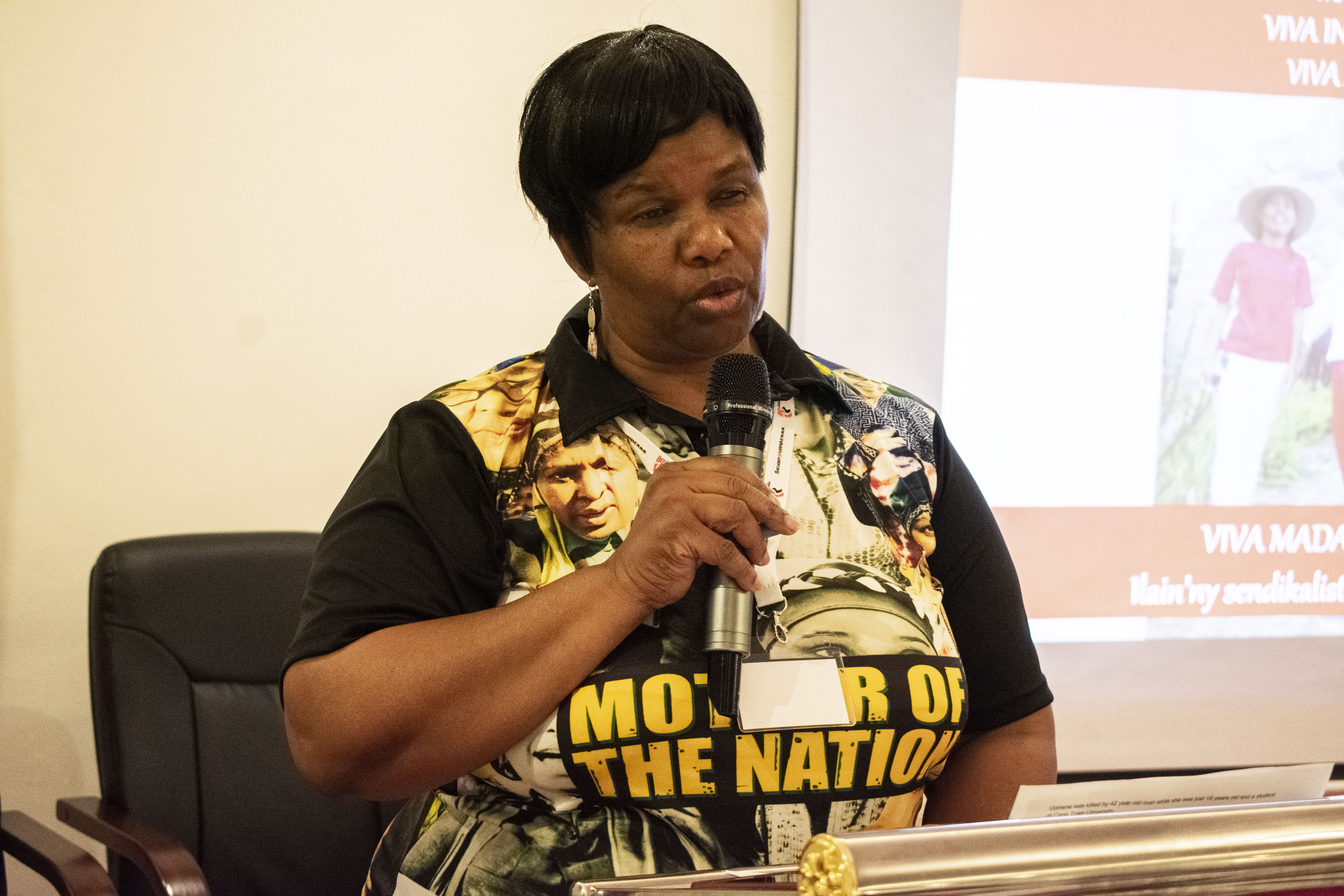 Lydia Nkopane of the NUM spoke about violence against women. Women in the mining industry face gender-based violence at work, a lack of protective equipment and facilities suitable for women and discrimination in jobs and union positions.