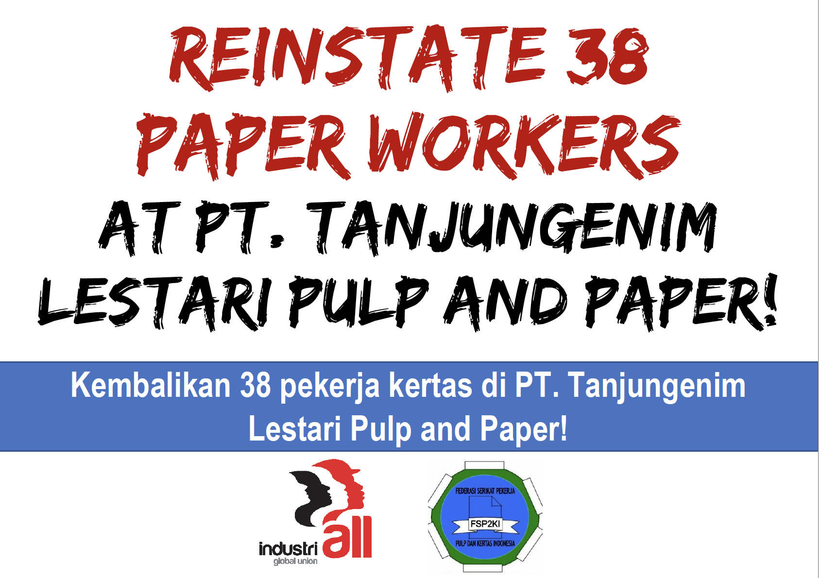 “¡Reincorporen a los 38 trabajadores de la industria del papel en PT. Tanjungenim Lestari Pulp and Paper!”