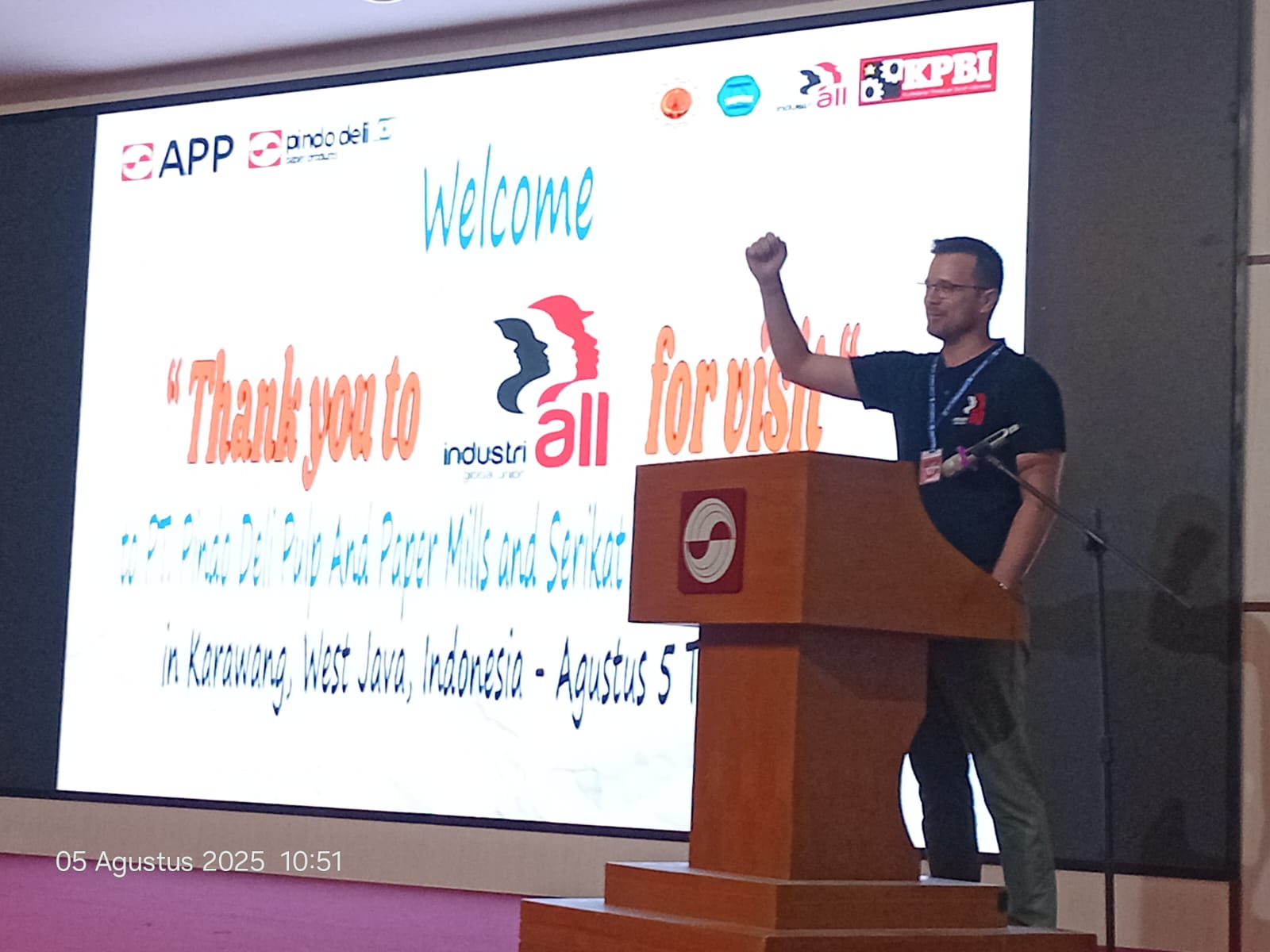 En la reunión de la red sindical del sector de la pulpa y el papel, celebrada del 5 al 7 de agosto en Yakarta, Indonesia, 70 representantes sindicales de Indonesia, Tailandia, Filipinas, Malasia, Vietnam, Australia, Bélgica, Brasil, Finlandia, Japón, Nueva Zelanda, Suecia, Estados Unidos y Uruguay debatieron los principales retos a los que se enfrenta la industria. Inicialmente prevista como una reunión regional, luego se abrió a los sindicatos del grupo de trabajo sectorial mundial para mostrar los avances logrados en la última década en la creación de una potente red regional, con la asistencia de los copresidentes mundiales de USW y Pappers.