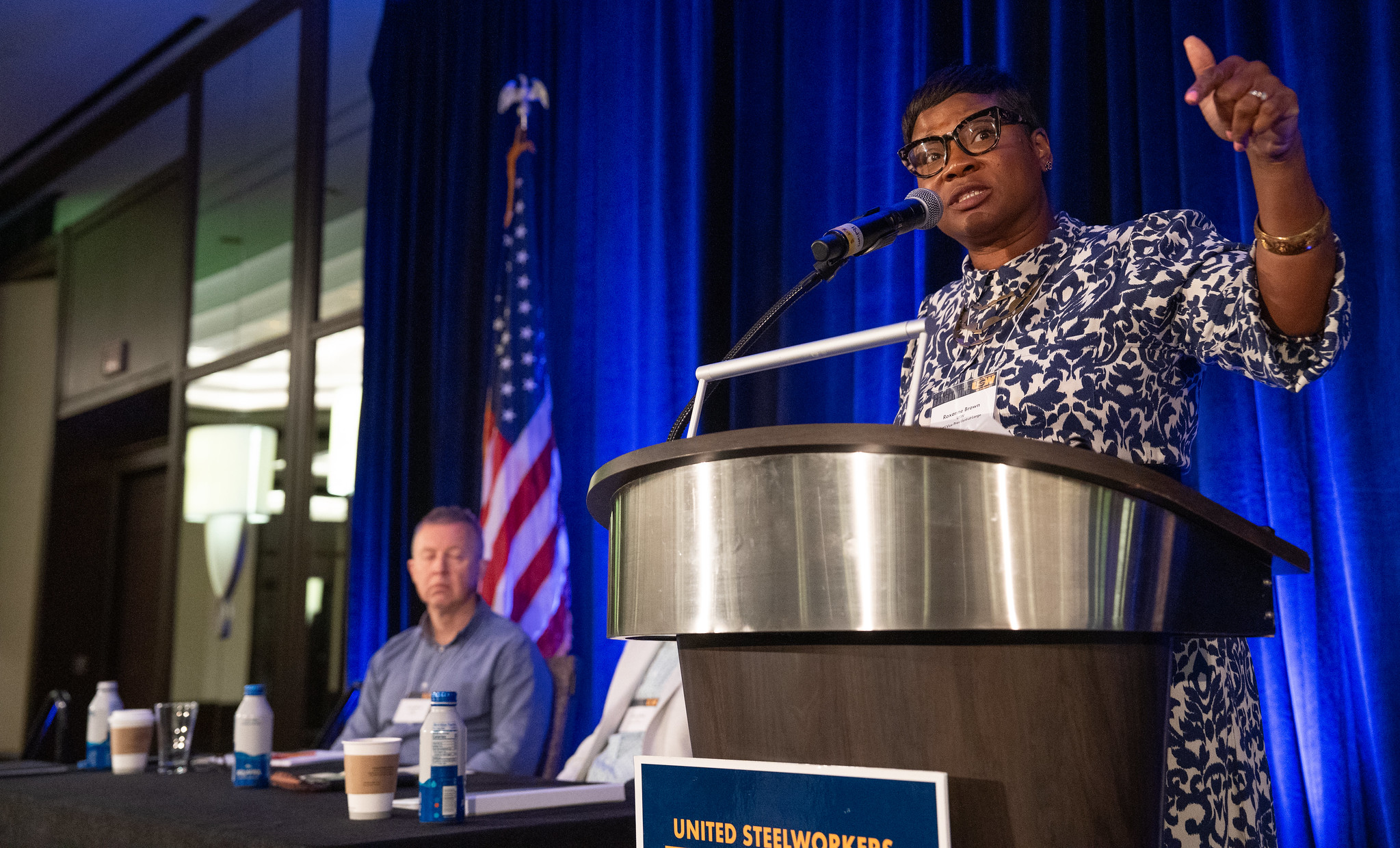 Roxanne Brown (USW) et V-P d'IndustriALL, s'adresse à la NOBC