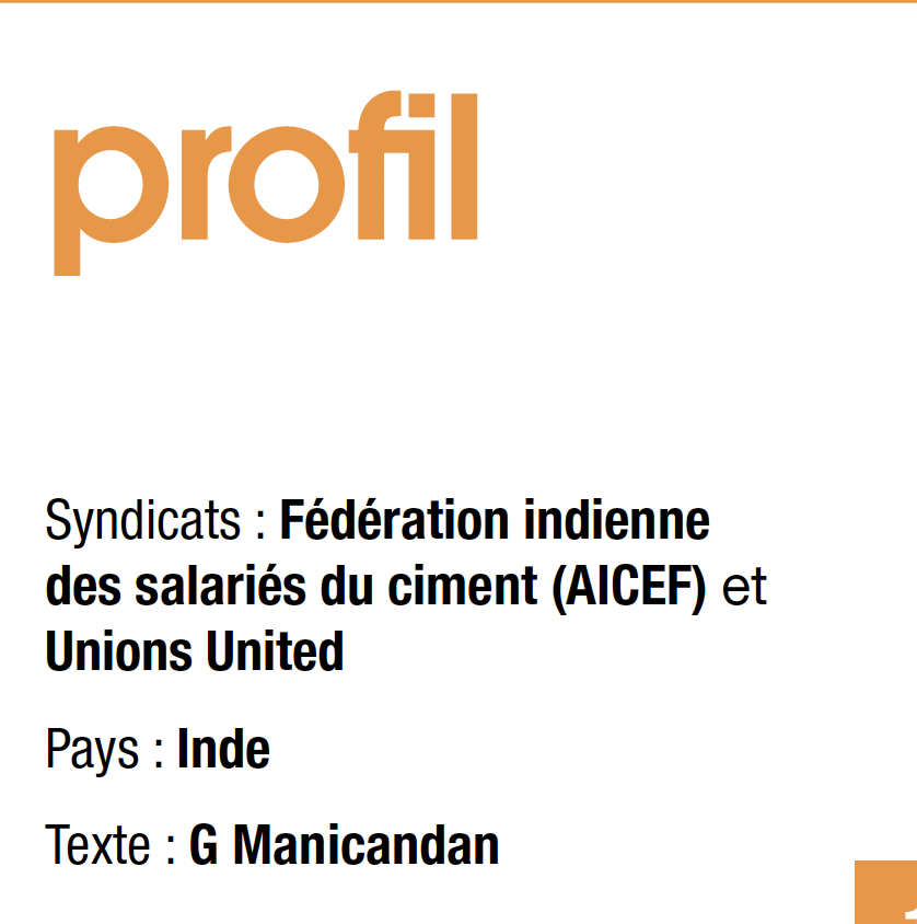 “Et dans le même temps, le réseau syndical national et international dirigé par IndustriALL dans le secteur du ciment permet de renforcer le travail de l’AICEF au plan national. IndustriALL fournit de bien nécessaire plateformes pour la formation en matière de santé et sécurité professionnelles, la possibilité d’apprendre au départ de l’expérience d’autrui ainsi que l’élaboration de réponses syndicales aux rapides évolutions technologiques, face à l’automatisation croissante de l’industrie cimentière indienne.”