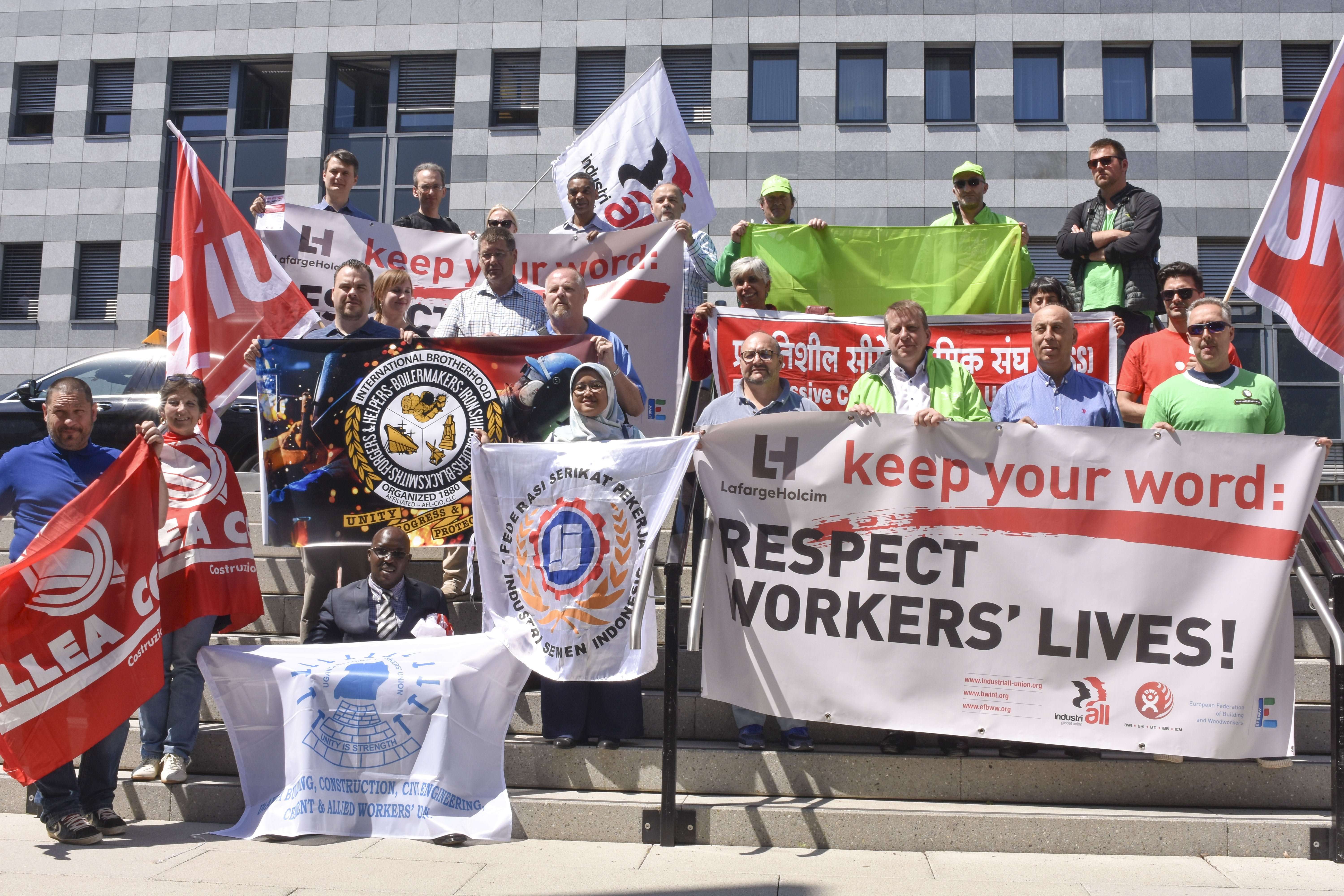 Syndicats manifestant à l’extérieur de la salle de réunion