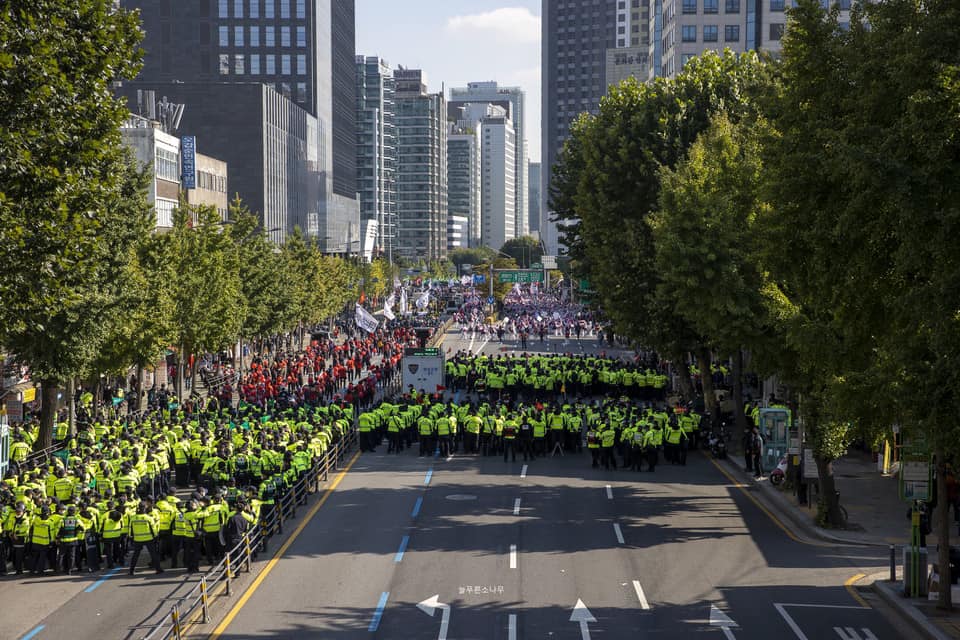 Despite severe restrictions on the right to assembly, rallies were held in 14 regions across Korea. In Seoul, police blocked off large areas of the city to prevent assembly. Eventually 24,000 striking workers were able to gather at Seodaemun intersection, demanding: