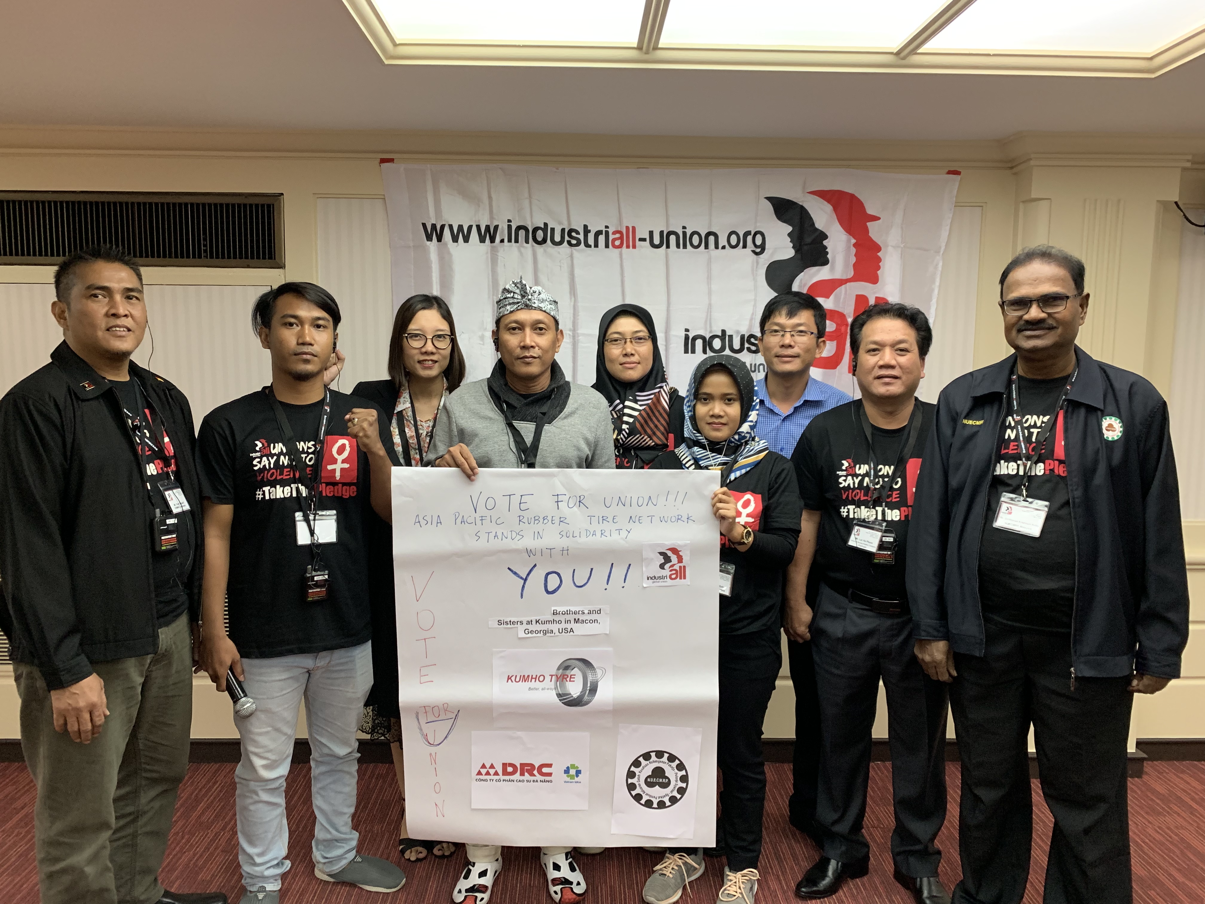 Solidarity with Kumho Tire workers in Georgia, USA, from tyre unions meeting in Bangkok in August.