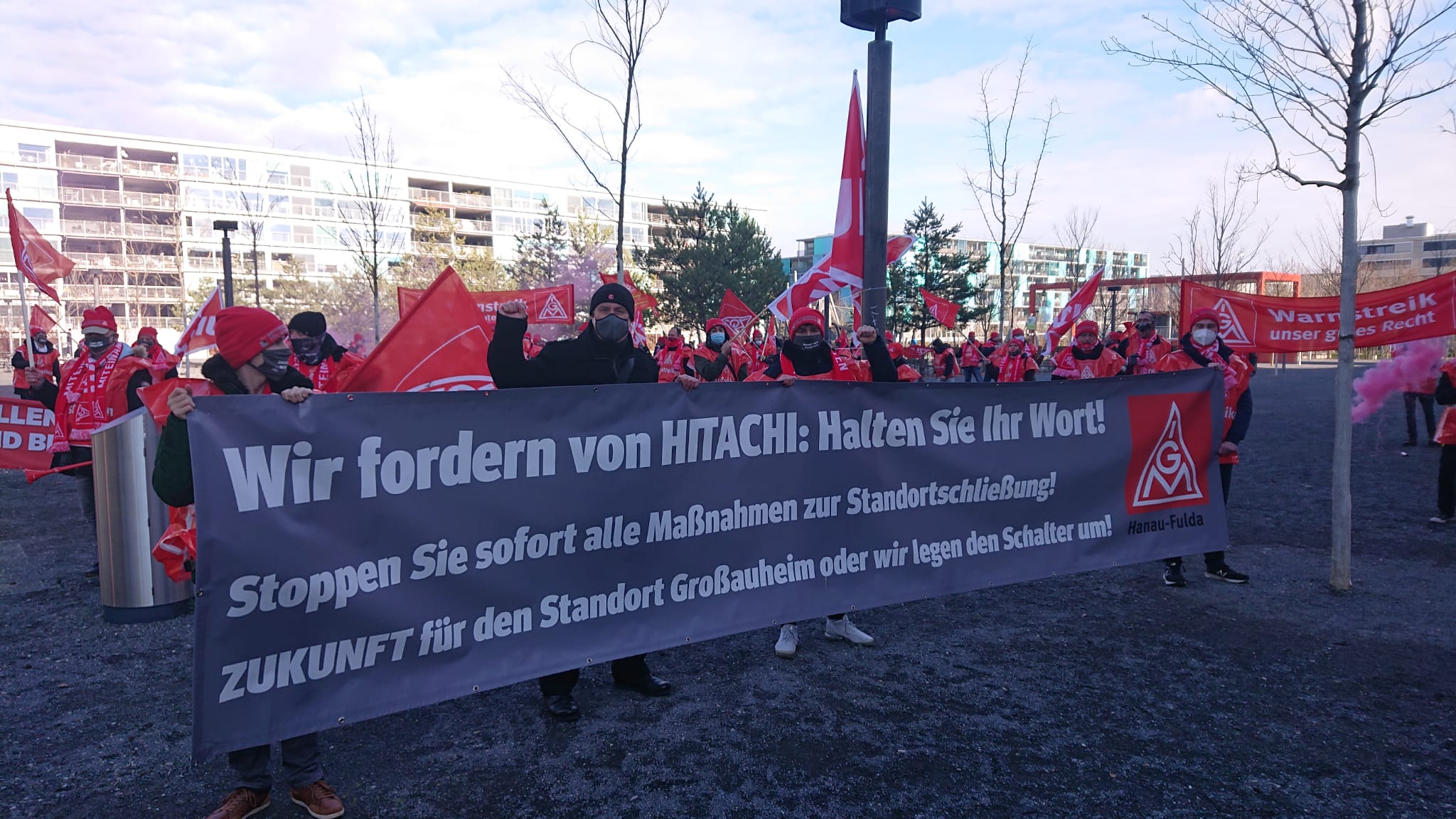 Более 100 рабочих завода приехали из Фульды в Цюрих Эрликон и провели акцию у здания, в котором располагается штаб-квартира Hitachi-ABB, в знак протеста против этого решения. Бастующих поддержал швейцарский профсоюз Unia, присоединившийся к митингу. Unia, как и Глобальный союз IndustriALL и IndustriAll Европа, выразил солидарность с бастующими рабочими.