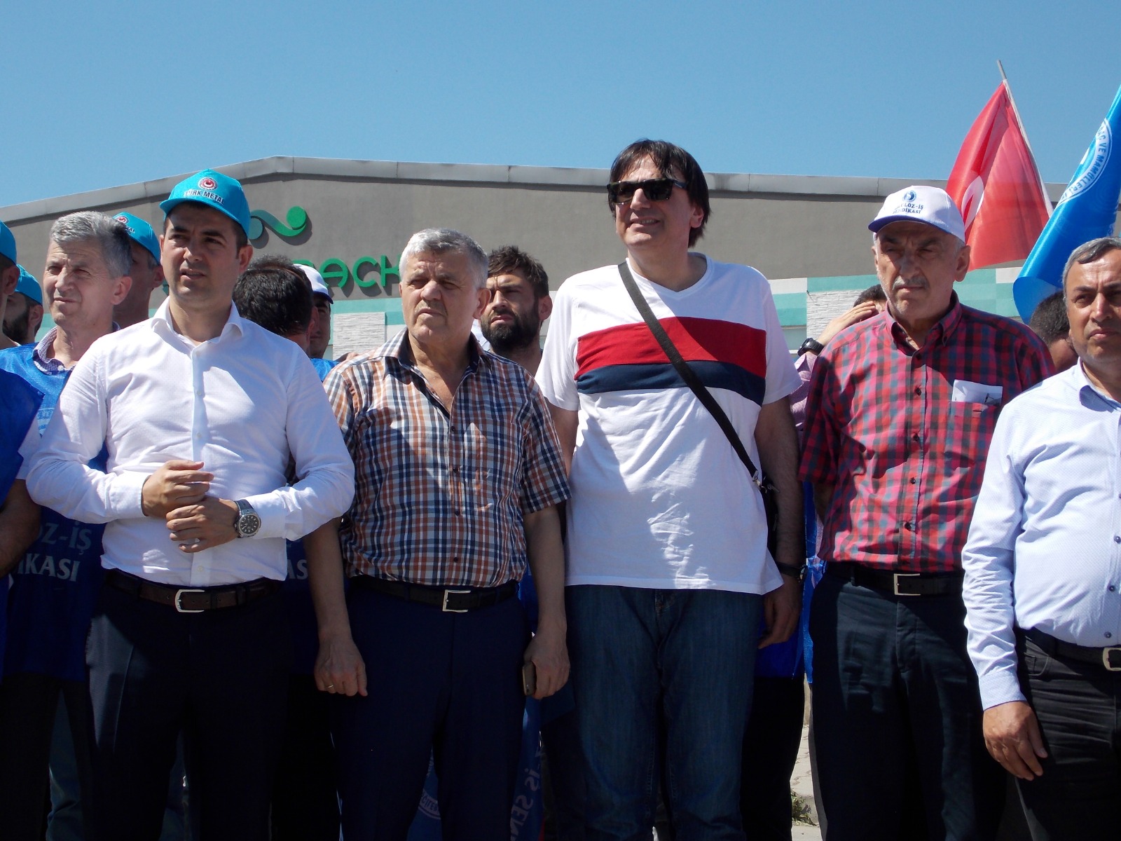 Акция проходит в городе Сёгютлю провинции Сакарья. Рабочие протестуют против незаконного увольнения 29 мая 2019 года шестерых членов профсоюза.