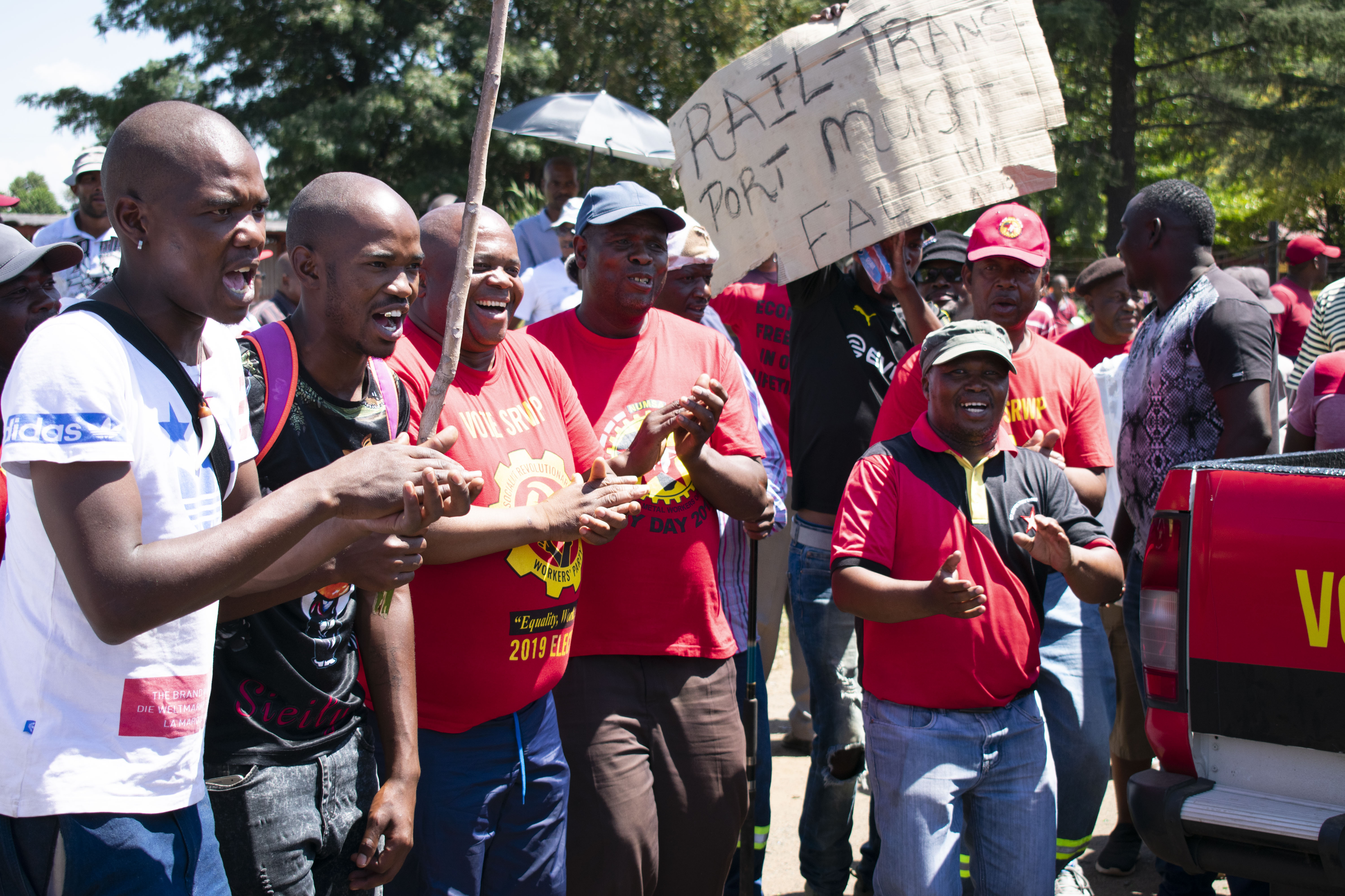 NUMSA members strike against ArcelorMittal in March 2019.