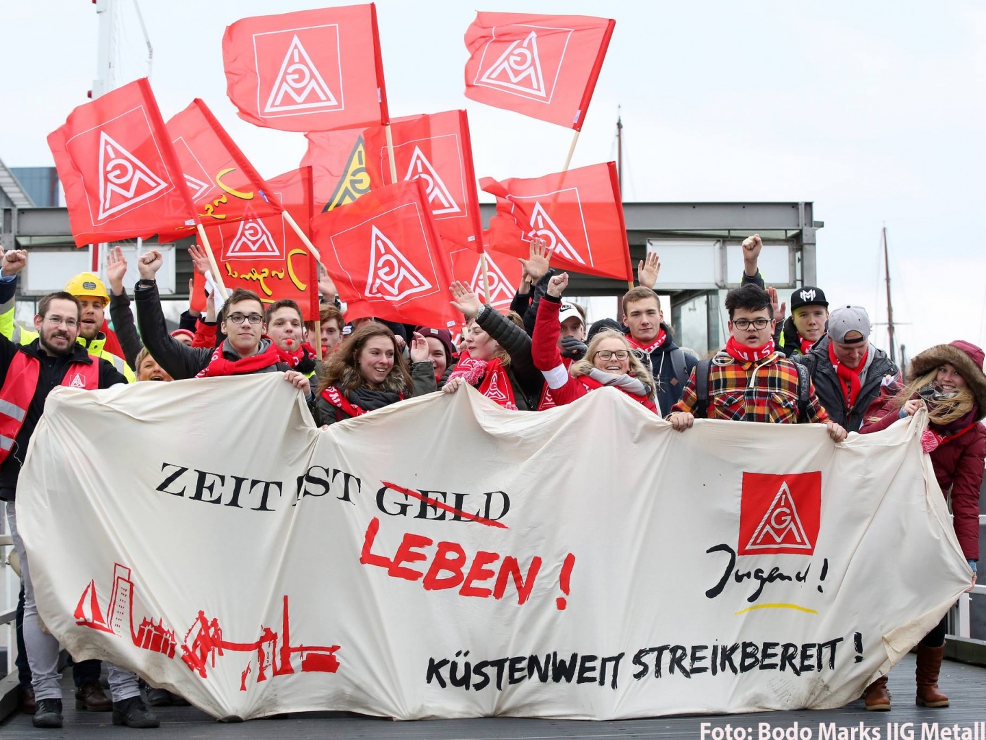 "Time is life!" IG Metall members demonstrate for a better work-life balance. Photo: Bodo Marks/IG Metall